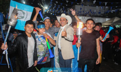 El señor alcalde recibió con entusiasmo las antorchas patrias provenientes de diferentes comunidades y municipios vecinos. En un emotivo acto, encendió el fuego patrio y expresó...